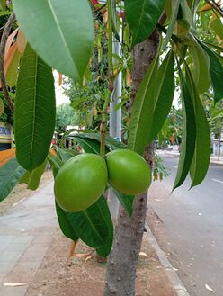 Bintaro (Cerbera manghas)  memiliki perawakan (habitus) berupa pohon, buahnya sekilas mirip mangga namun berbeda, daging buah bintaro berserat dan tidak dapat dikonsumsi. Buah bintaro Ketika matang akan berwarna merah saat matang dan bentuknya oval. Tumbuhan ini memiliki tinggi mencapai 10-20 metter. Batang bintaro tegak, berkayu, berbentuk bulat, dan berbintik-bintik hitam. Kulit batang binnatro tebal dan berkerak. Tumbuhan bintaro memiliki karakteristik morfologi berdaun tunggal, lonjong, permukaan licin, dengan tepi rata, ujung dan pangkal meruncing, serta pertulangan menyirip. Ukurannya biasanya panjang 15–20 cm dan lebar 3–5 cm, berwarna hijau. Daun ini tersusun dalam kelompok di ujung cabang tanaman.