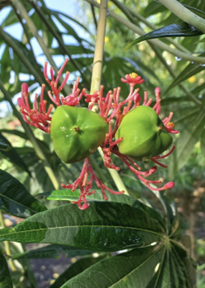 Getah tumbuhan ini dipakai sebagai obat luka. Tumbuhan ini cukup beracun dan konsumsi tumbuhan ini menyebabkan gangguan pencernaan. Tumbuhan ini di Indonesia dikenal dengan nama Jarak tintir, Tanaman Betadin, dan Tanaman Yodium.